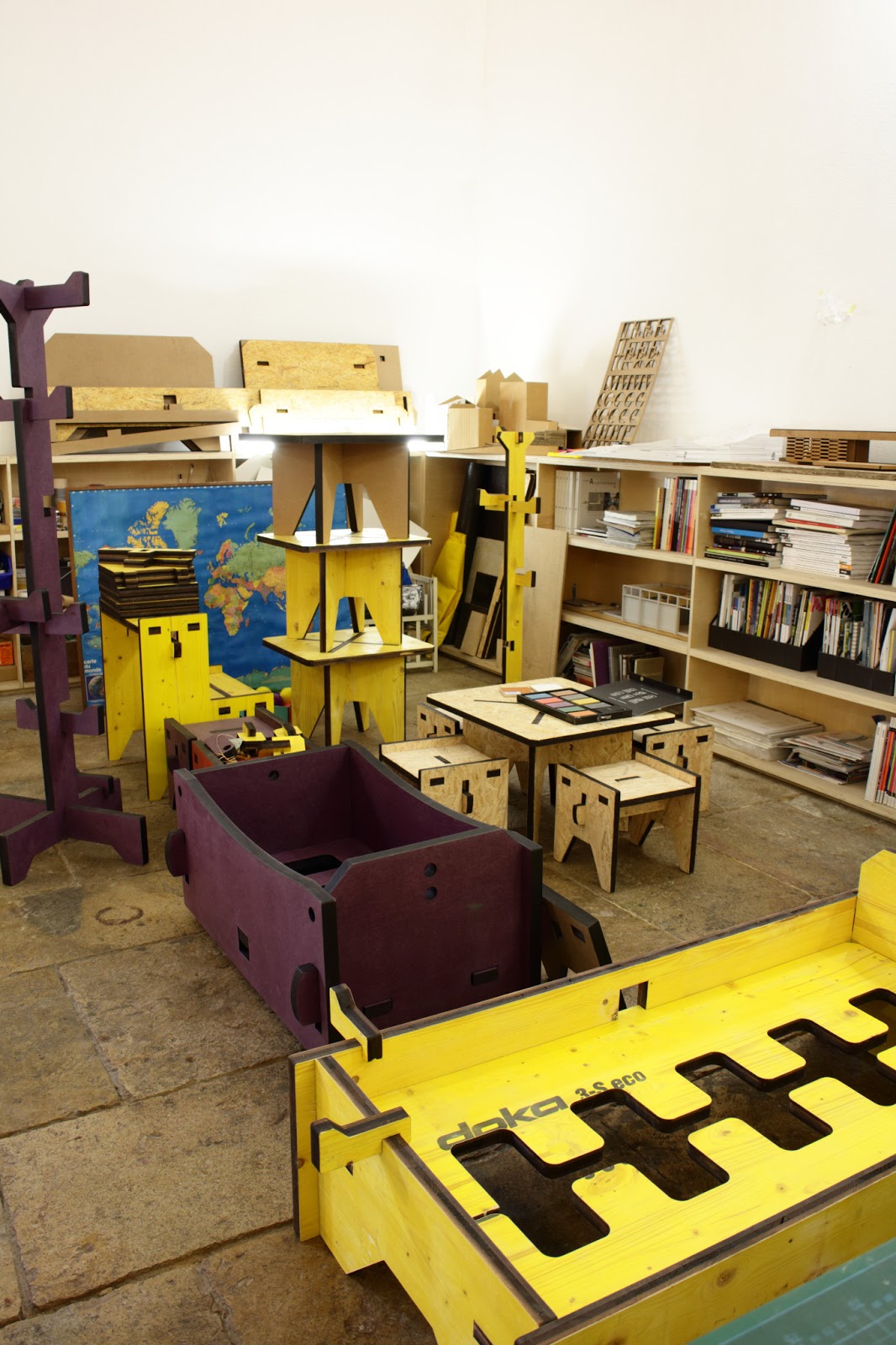 que a simplicidade do desenho permite que a montagem das diferentes peças de mobiliário